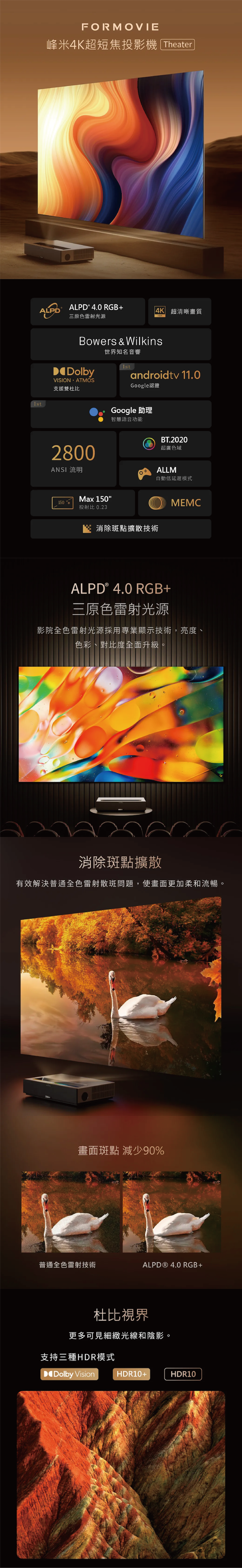 【峰米】峰米T1 - 4K超短焦雷射電視