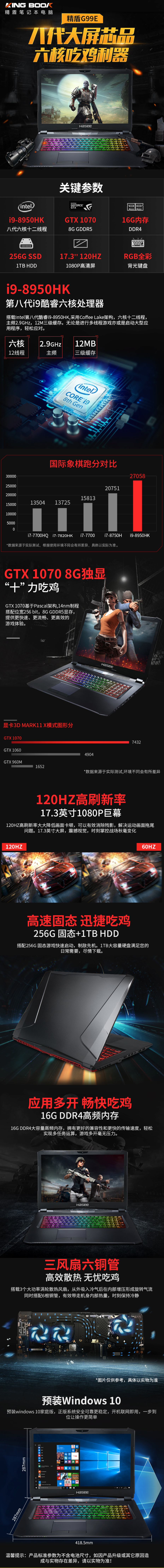 【神舟HASEE】G99E GTX1070 8G 17.3寸電競筆電 (120Hz I9-8950HK 16G 1T+256G SSD)