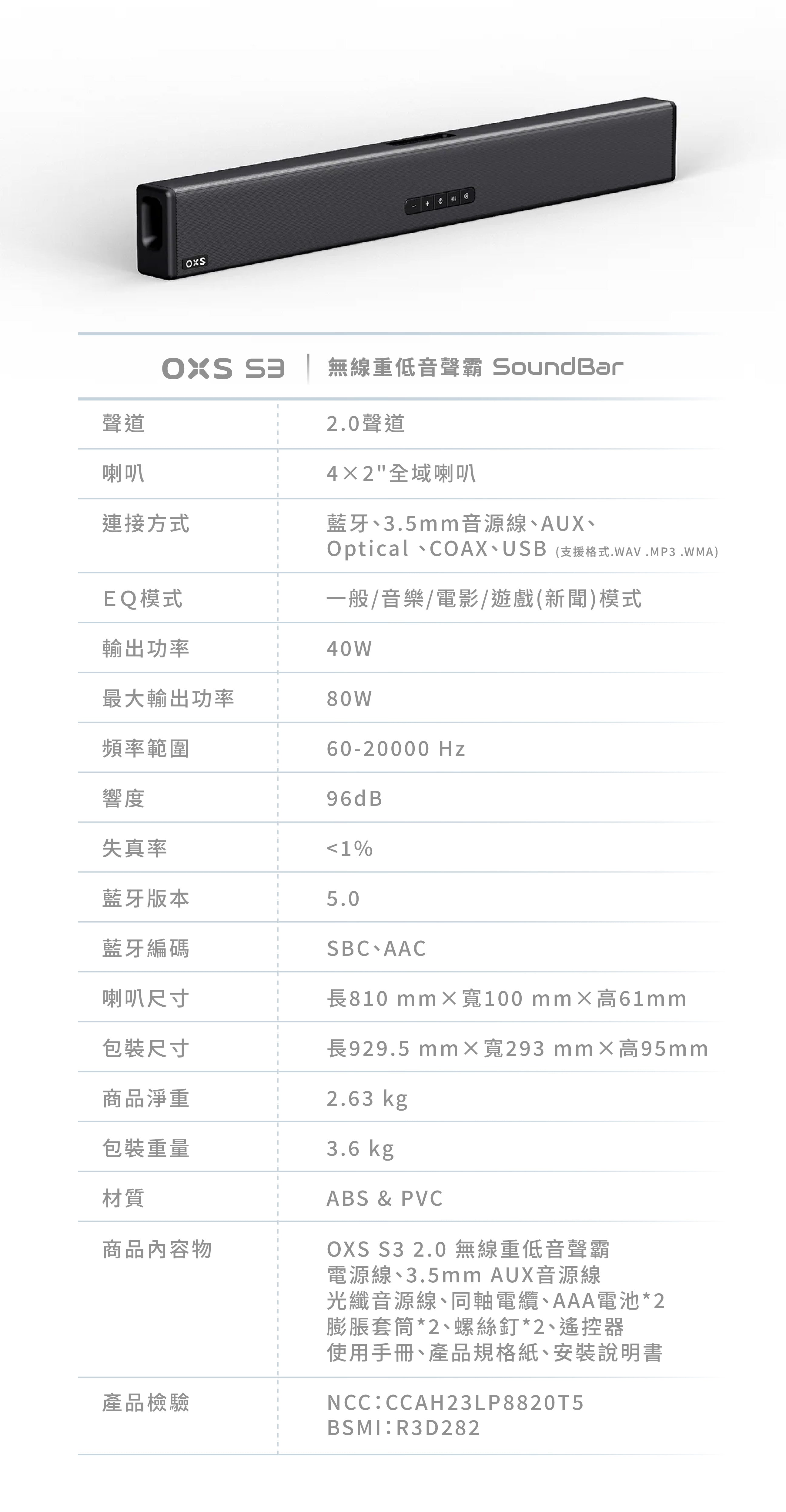 【OXS】S3 無線重低音 SoundBar
