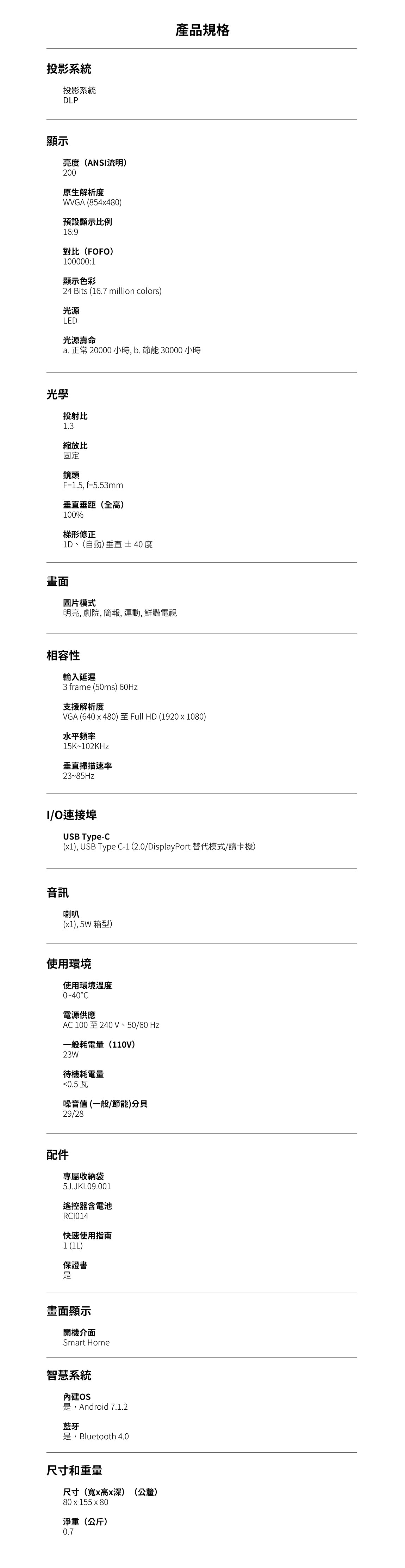 【BenQ 】GV1 投影機